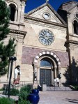 Cafe Pasqual’s is a very popular place, and there was a line of people at the door. I smiled at the host and asked about the wait and he said that he could seat me immediately at the “community table.” Having skipped breakfast, this was a very happy arrangement, and I grinned as I was lead to the oval table in the center of the tiny restaurant and seated next to another lady eating alone. We chatted away like long lost buddies; she was a delight! A young couple across from me shared recommendations on what to order, and another couple found out that I am auditioning for Shakespeare companies and said “Do you know Tina Packer?” Well, Tina Packer is an idol of mine that I had the privilege to learn from this last January at her homestead in Lenox, MA. It is such a small, small world and I can’t say enough how happy I am to be part of such serendipitous events. Oh yeah, the food….it was MARVELOUS! I had some kind of southwestern huevos mutulenos- eggs on corn tortilla with black beans, sauteed banana, feta, green peas and green and red chile salsa. Yum!