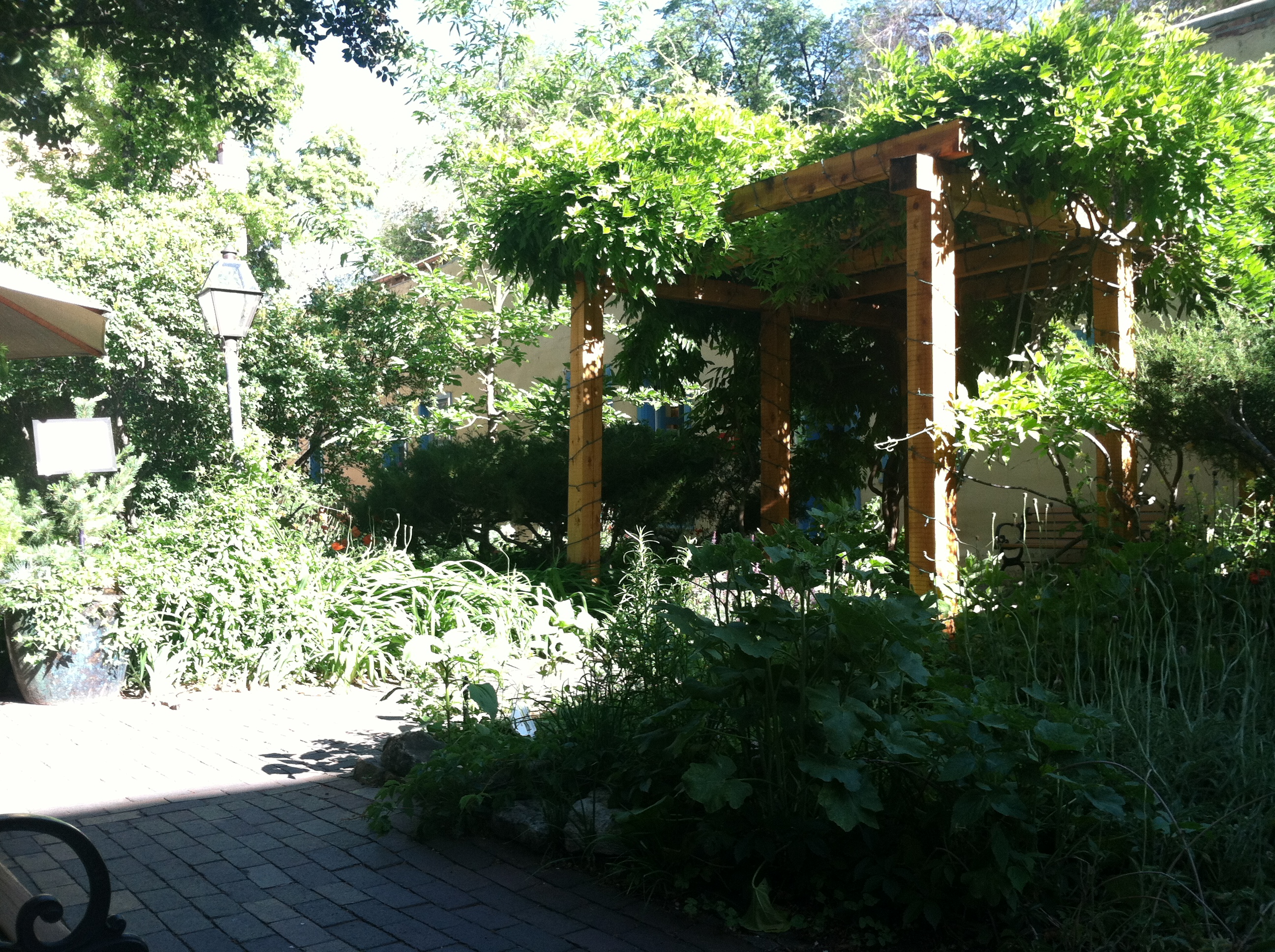 I strolled around the adorable town not caring where I went or how lost I got. It reminded me of Guadalajara and their beautiful open-air cafes and markets. I walked into little alleys to come out into abundant courtyards overflowing with flowers, trees and lushness so beautiful it took my breath away. Inside these courtyards were restaurants with twinkling lights and white table cloths. My only disappointment was that I hadn’t stayed in Santa Fe as I had to drive the hour and a half back to Taos and leave the quaint, but hip, town to explore more on a future trip. I will definitely be back.