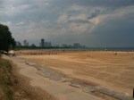 We walked a couple of miles to the beach on Lake Michigan from her apartment, longing for some relief from the humid high temperatures. We arrived hot, surveying the crowded beach, bummed about the blaring music and incessant bass pounding across the sand from some loudspeakers in the distance, slathered on sunscreen and flopped down on our blanket with a sigh. Not five minutes later we heard whistles and shouts and people moving in droves toward the parking lots. The lifeguards were shooing everyone out of the water and off of the beach, requiring us to leave because the weather was threatening a thunderstorm. Audrey and I just had to burst out laughing, because we had just got there! Dejected we folded up our blanket and headed back toward town and the sanctuary of a cafe, coffee and a deck of cards.