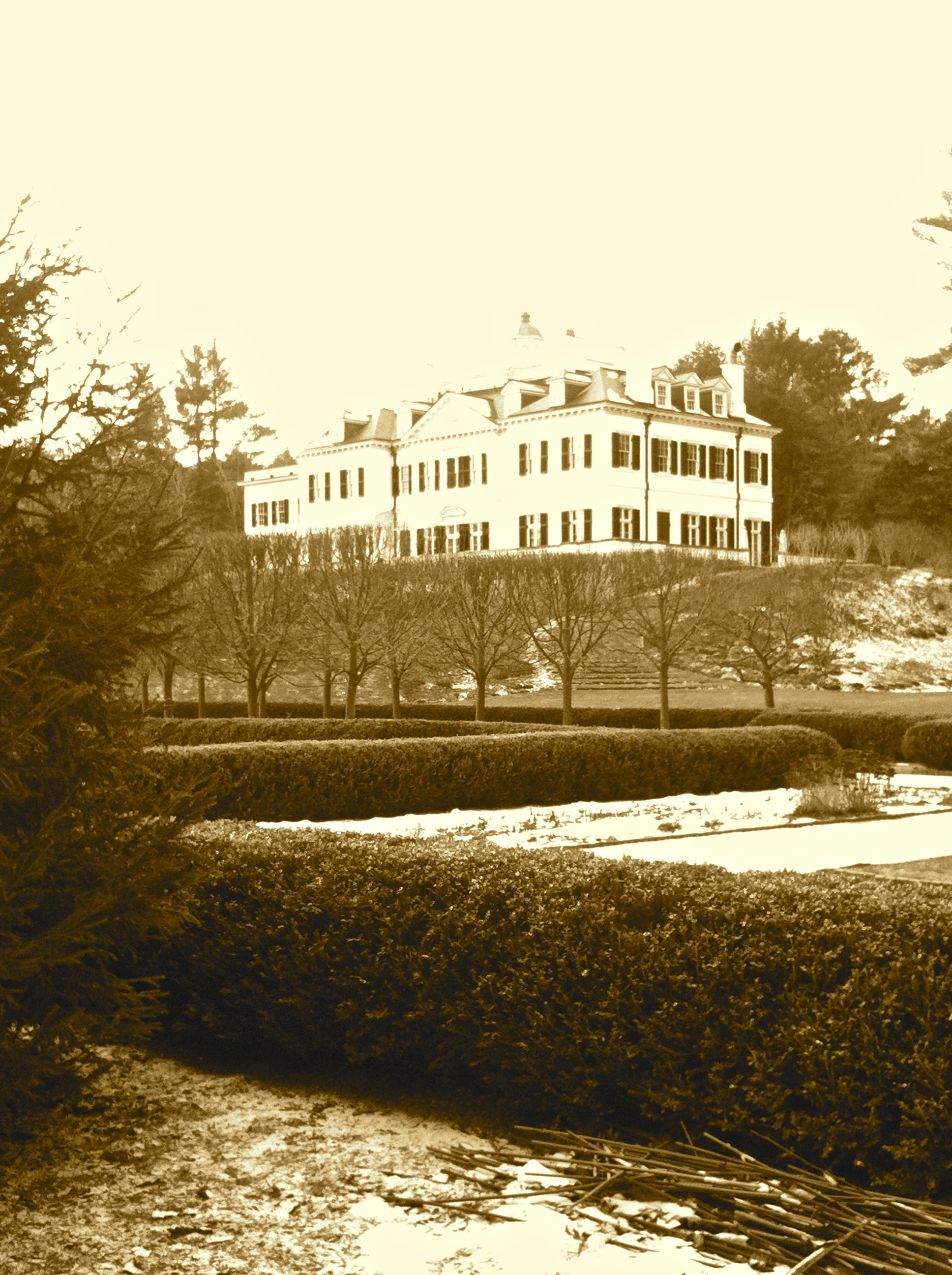 The grounds are open dawn to dusk for meandering and I had it all to myself in the sparkling snow-cone-like late afternoon. I let my imagination run free and it transported me to 1902, wearing a long dress, corset and an extravagantly trimmed hat. I strolled about the gardens, paused at the beautiful views and made-believe I was being courted and asked to dance on the broad terrace. It was lovely.