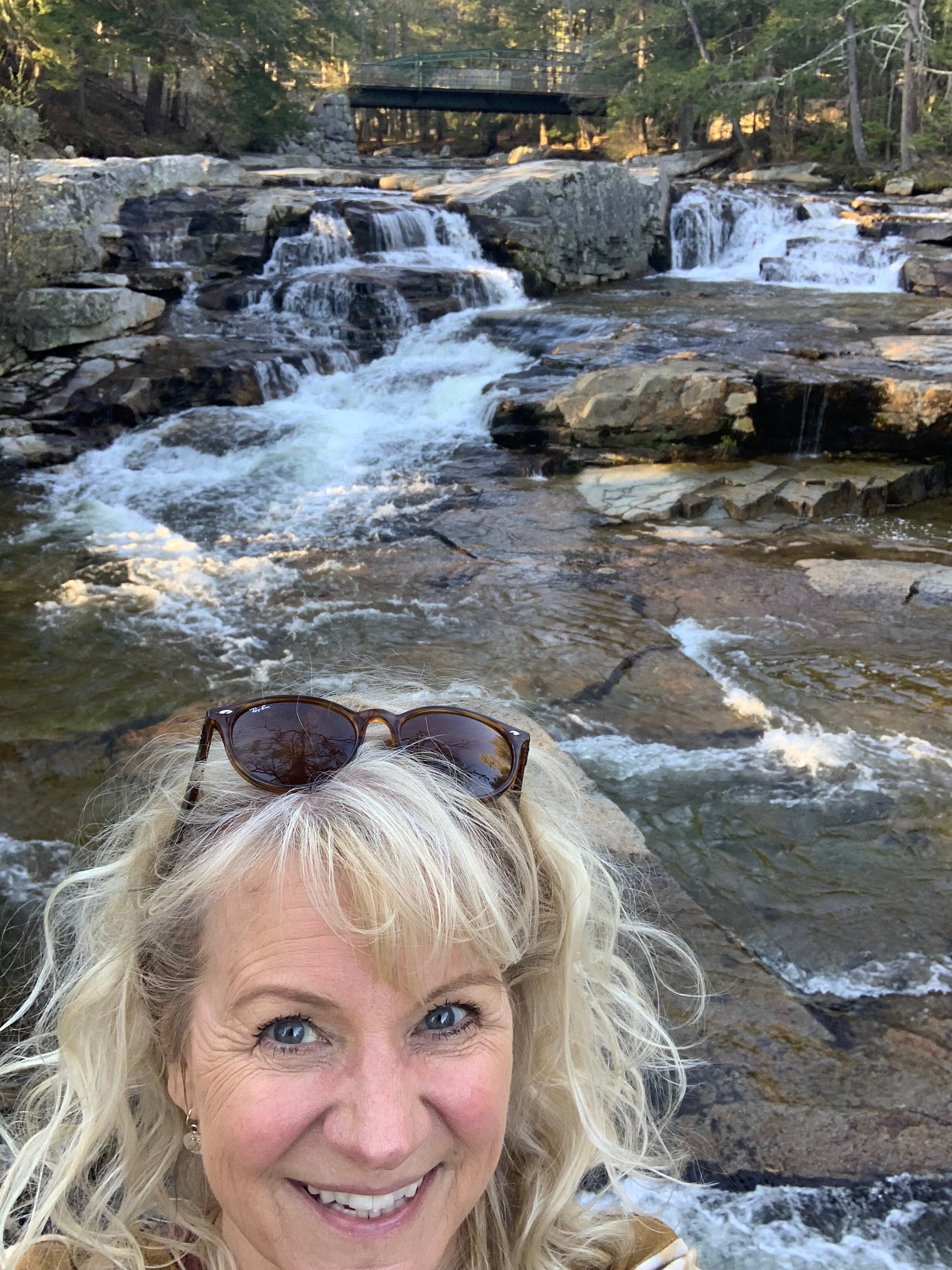 I arrived in Jackson, NH to check into the Christmas Farm Inn. They were so nice they even opened their spa on their one day off to schedule a one hour massage just for me. After checking in and checking out my lovely large room and sitting room, I walked down the hill to the local “falls” that rush through this tiny river town. I sat there on the rocks watching the glorious rushing water and felt the cares of my world fall away.